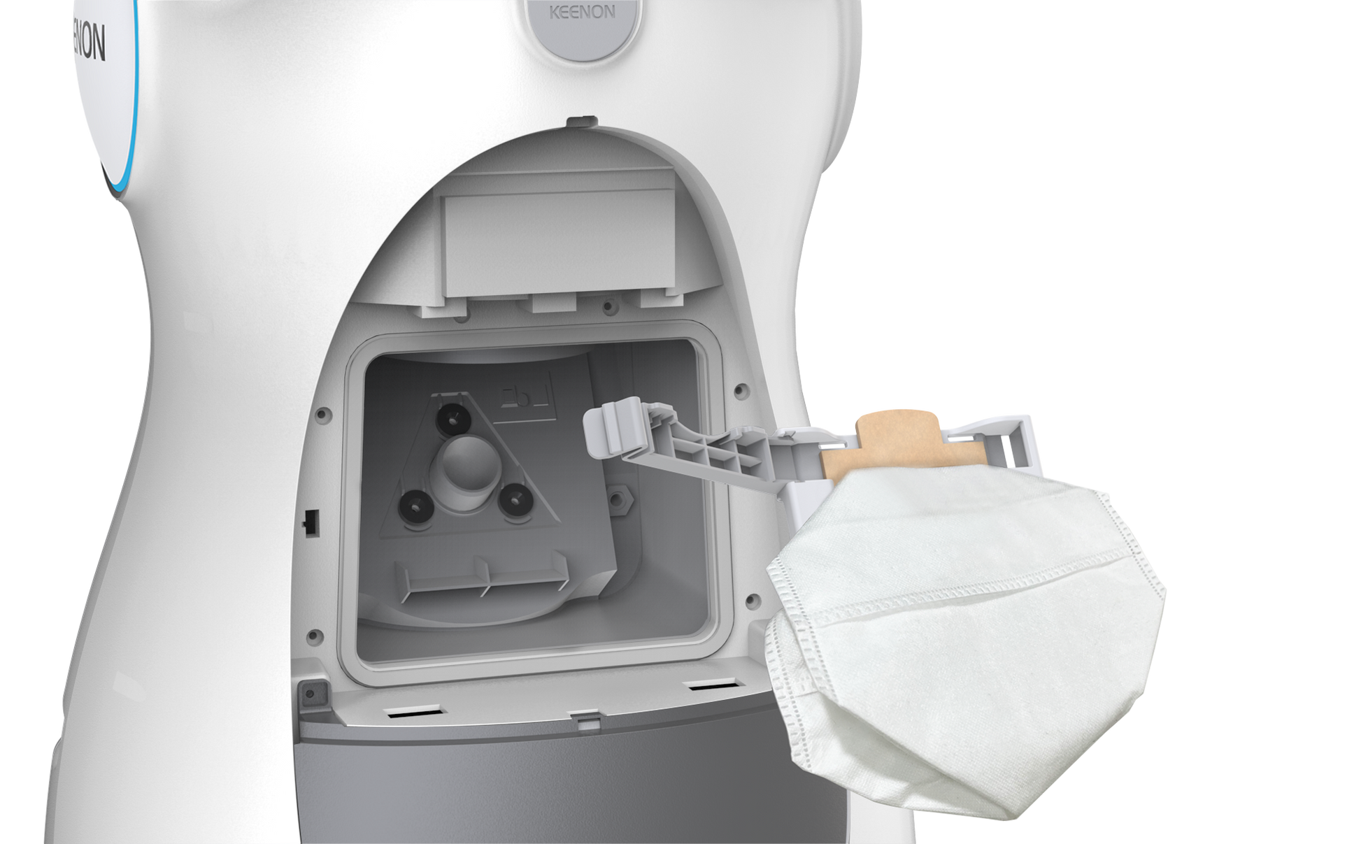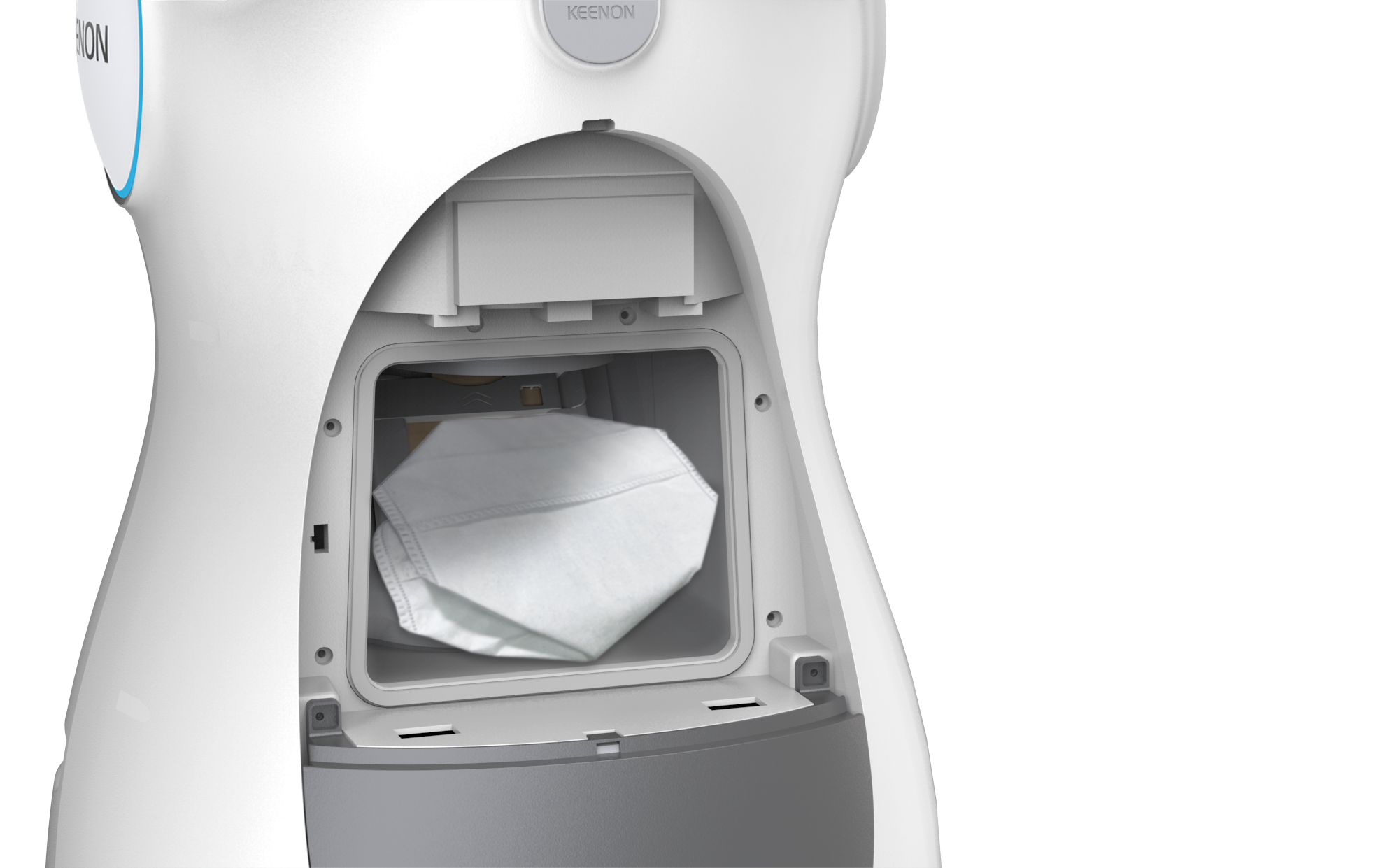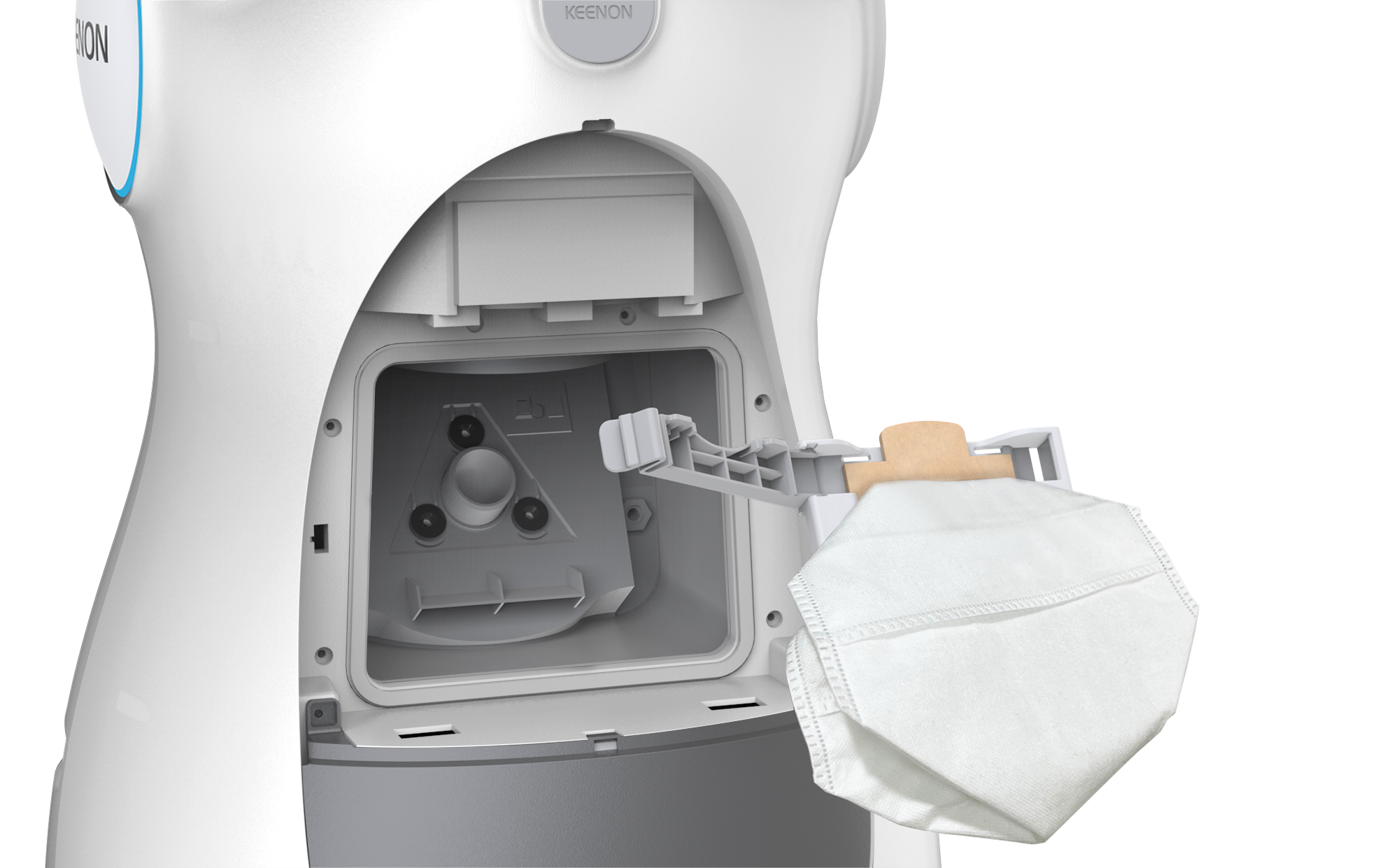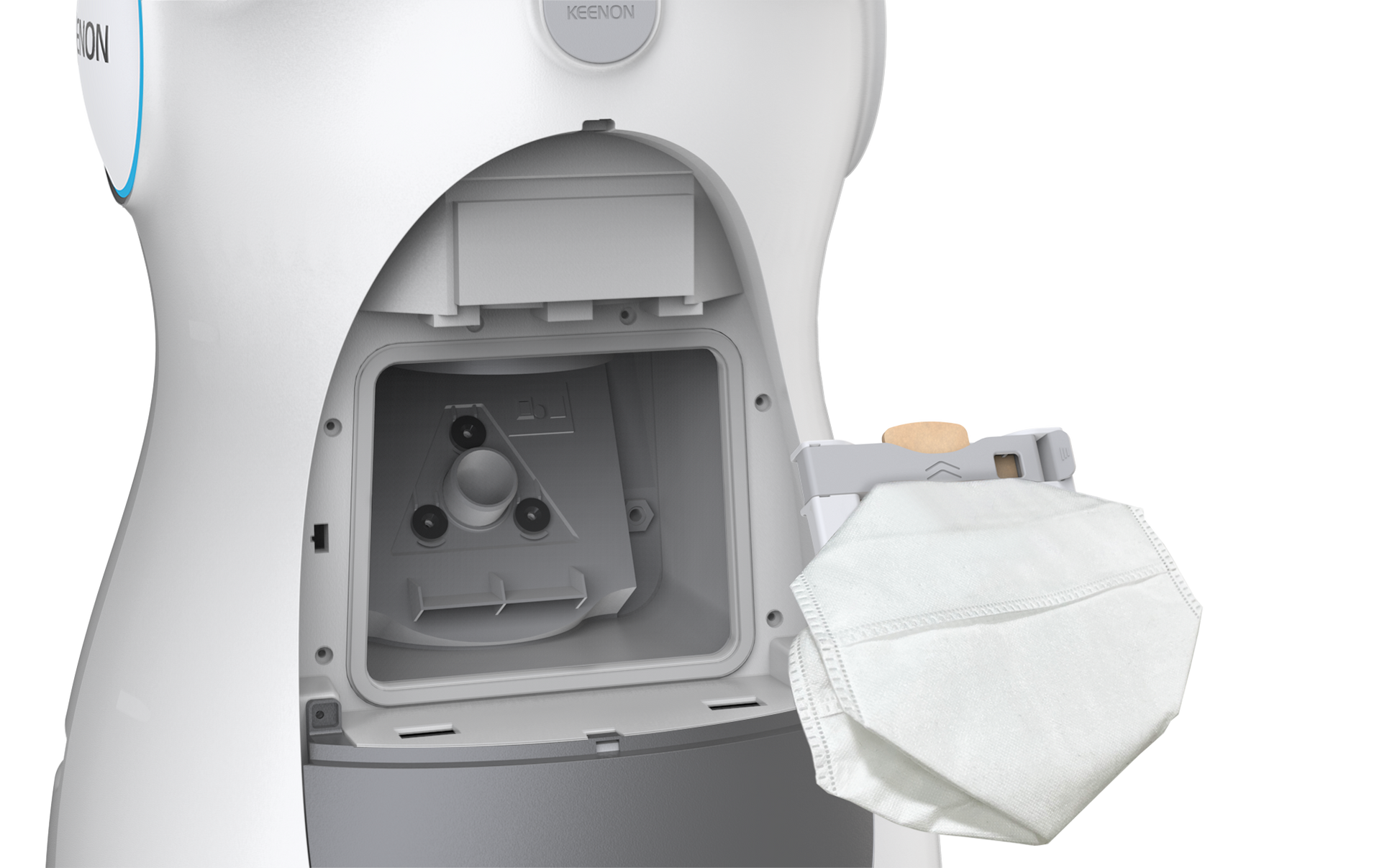Die bionische Formsprache ("Kitten-Design") und die digitale Mimik fördern die Interaktion mit Kunden und Gästen und machen den Roboter zum Blickfang in jedem Objekt.